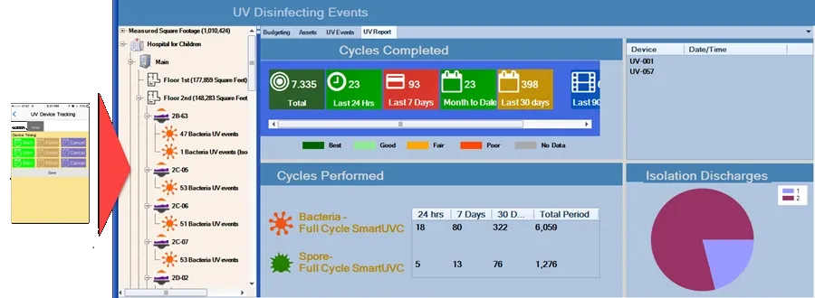 In addition to discovering opportunities to retrain your environmental services workers, the data from HAIvia Mobile can be used to track UV disinfection events and correlated with isolation discharges and more.