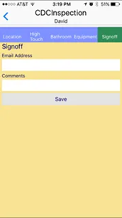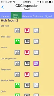 Easy Touchscreen Entry Enjoy easy touchscreen selection of “Clean”, “Not Cleaned” or “Not Present in Room” designations per the CDC Checklist. Checklist items can be customized to add additional high-touch items to the inspection. |